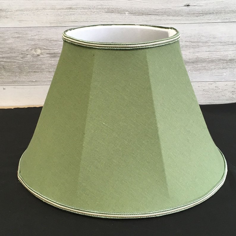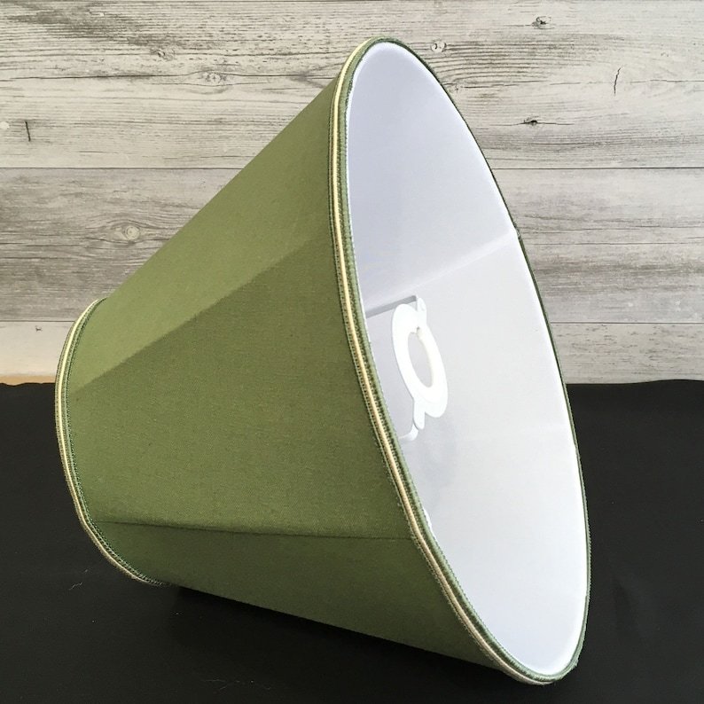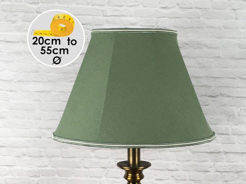 Add a touch of timeless elegance to your interior with this Retro-Style Empire Lampshade, beautifully handcrafted in a rich Moss Linen. Featuring traditional straight edges and finished with a complementary green and oyster soutache trim, this classic design brings understated sophistication to both modern and traditional spaces.