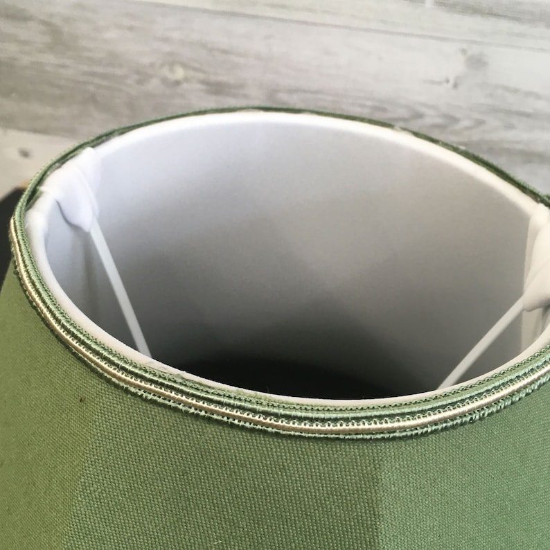 Each lampshade is handmade to order in our Devon workshop using traditional techniques that have remained virtually unchanged for over 60 years. The shade is fully lined with soft white fabric, ensuring excellent light diffusion while enhancing the overall quality and luxurious finish.